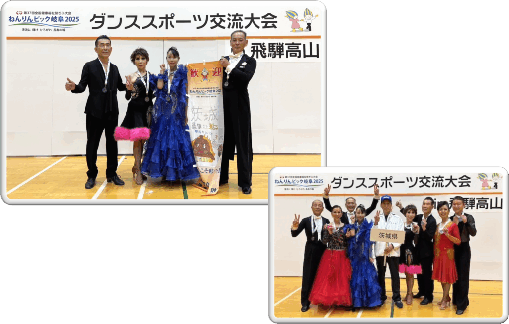 10月19日(日)岐阜県高山市で行われた『ねんりんピック ダンススポーツ交流大会』に、水戸地区会員の平沢組と金沢組が県の代表選手として参加しました。
